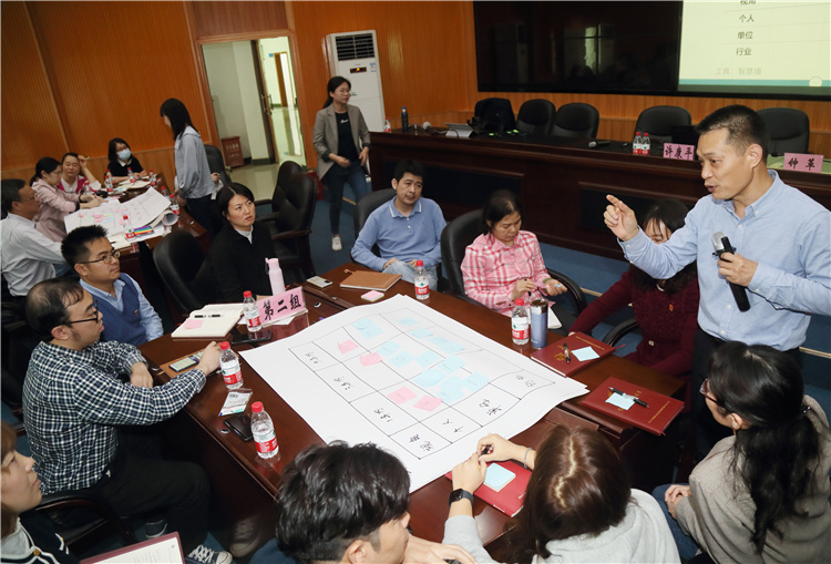 廣西行動學習研究會秘書長許康平教授詳細解析了行動學習的理念及如何在工作中運用行動學習工具解決問題,給支部委員們帶來了一次全新的理論洗禮,領會行動學習“問題、團隊、學習、行動”的核心理念。課題實操演練環節,各支部委員分成六個小組圍繞“共建黨建品牌”主題進行交流研討。分析出了黨建品牌建設障礙及主要解決對策,各組還將各自的解決對策進行成果展示。現場通過投票法、頭腦風暴法等集中焦點痛點問題,提出解決方案,過程緊張激烈又富有趣味性,氣氛十分活躍。
