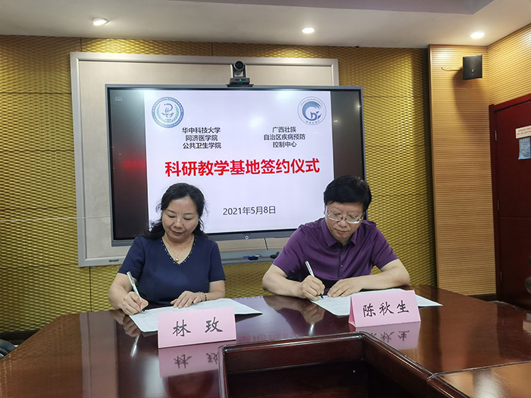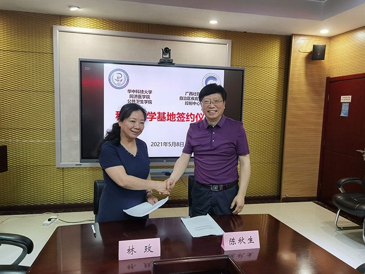 為助力“健康廣西”建設,提升疾病預防控制機構的科研核心服務能力,給國家培養更多的優秀醫藥衛生人才,推進我區疾控事業高質量發展,2021年5月7-8日,自治區疾控中心主任林玫帶領綜合辦、人事科、科培科等部門負責人赴華中科技大學同濟醫學院公共衛生學院商討合作事宜,華中科技大學同濟醫學院公共衛生學院黨委書記陳秋生、副院長劉烈剛、流行病與衛生統計學系主任魏晟、辦公室主任方為民參加本次活動。
