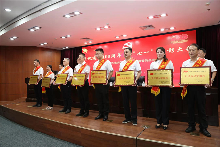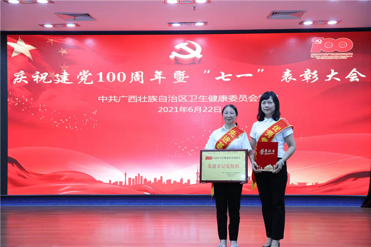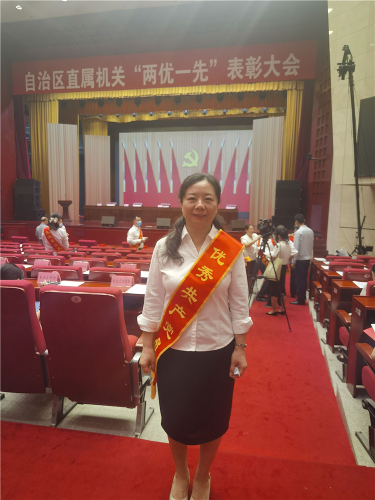 6月28日,自治區黨委區直機關工委召開慶祝中國共產黨成立 100 周年暨“兩優一先”表彰大會,表彰在建設新時代中國特色社會主義壯美廣西征程中涌現出的一批優秀共產黨員、優秀黨務工作者、先進基層黨組織。其中我中心黨委副書記、主任林玫獲“自治區直屬機關優秀共產黨員”榮譽稱號并作為獲表彰代表上臺領獎。