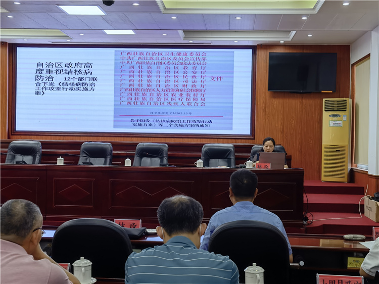 首先,自治區衛健委龐軍副主任對廣西近年來結核病防治工作取得的成效給予了肯定,政策保障不斷完善、經費投入不斷增加、結核病防治體系建設的完善和防治服務能力不斷提升,疫情持續穩步下降,充分體現了廣西的結核病防控工作一直在穩步的推進。但他也指出,廣西的結核病疫情,特別是老年人等重點人群的疫情依然居高不下,老年人肺結核患者的發現和治療管理仍然是結核病防控的薄弱環節。在“十四五”規劃的開局之年,在我區疫情較高的20個縣區的1202個社區,對28.9萬的老年人人群開展主動篩查,對于控制傳染源,降低廣西結核病的總體疾病負擔意義重大。龐副主任指出,各地一是要務必高度重視,加強組織領導,統籌協調推進結核病主動篩查各項工作;二是分清各部門職責,強化工作聯動;三是注重篩查工作成效,確保應篩盡篩、提高診療質量,落實患者隨訪管理,提高患者的發現、治療依從性和成功治療率;四要關注學生、病原學陽患者的密切接觸者、TB/HIV雙重感染和糖尿病人等其他重點人群結核病篩查。