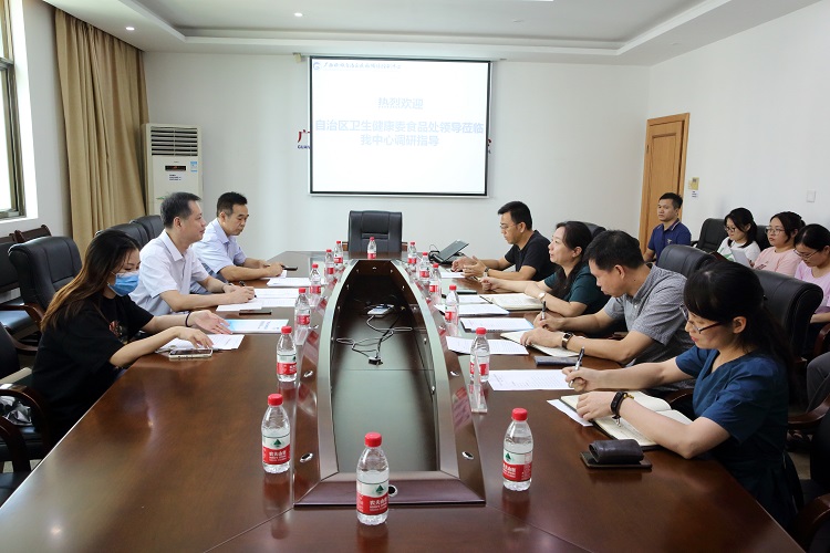 2021年9月6日下午,自治區衛生健康委員會食品安全標準與監測評估處(以下簡稱食品處)處長龐清一行,到我中心調研指導食品安全與營養健康工作。自治區疾控中心林玫主任、黃兆勇副主任以及食品安全風險監測與評價所(以下簡稱食安所)、營養與學校衛生所(以下簡稱營學所)等相關科所負責人及業務骨干10人參加了調研座談會。